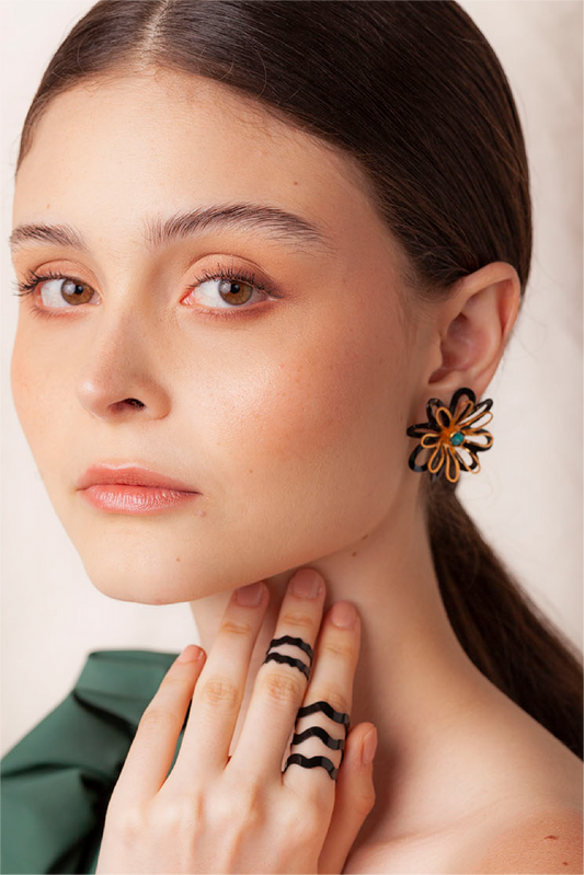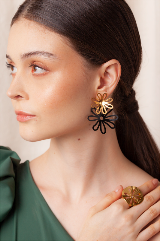 AgotadoARETES GAZANIA FLOR GOLD & BLACK