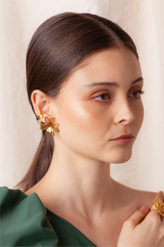 Aretes flor Gazania con earcuff solitario